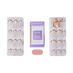 Ready for a flawless French mani without the fuss? Say oui to imPRESS??the EASIEST mani ever! Our new and improved adhesive ensures a secure hold that lasts up to 10 days. No glue needed??just peel. press & go!