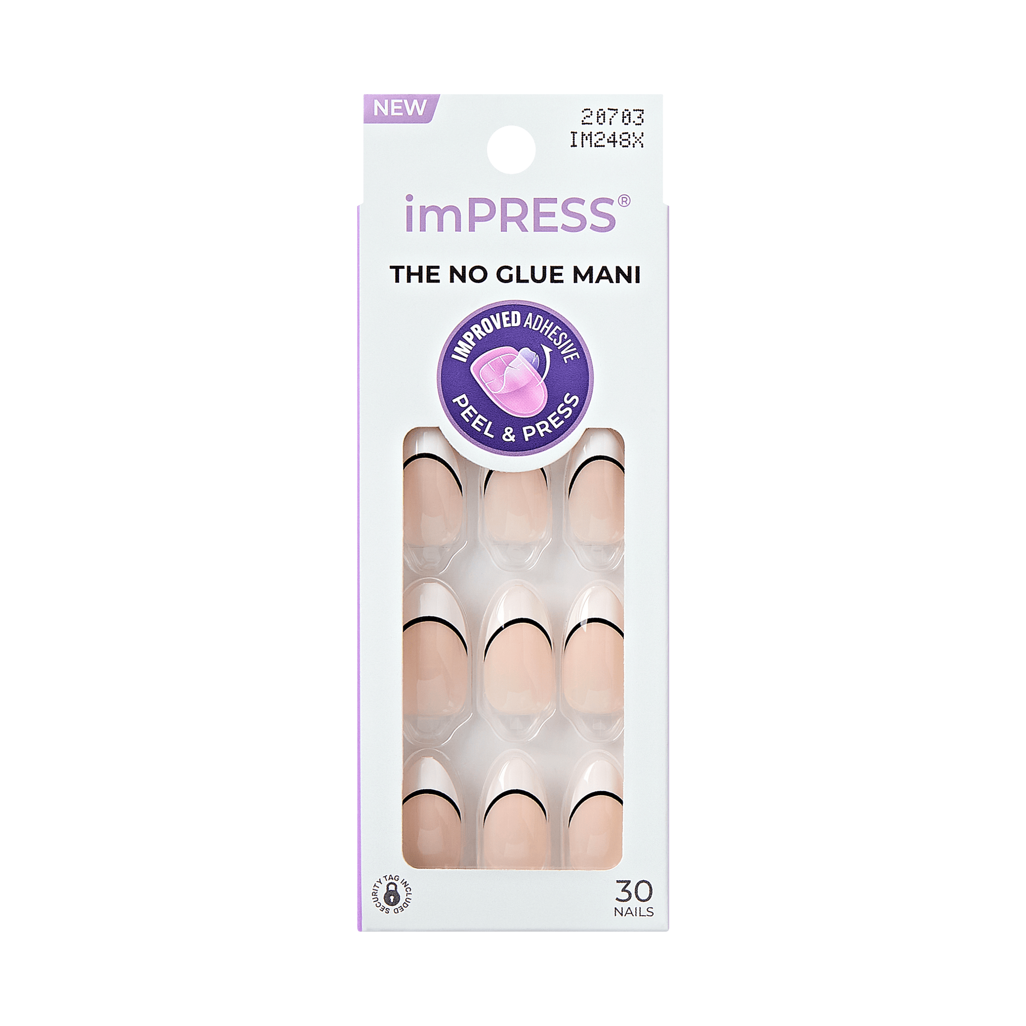 Ready for a flawless French mani without the fuss? Say oui to imPRESS??the EASIEST mani ever! Our new and improved adhesive ensures a secure hold that lasts up to 10 days. No glue needed??just peel. press & go!